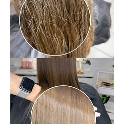Embroidered cut is a technique for removing split ends and flyaways, done strand by strand, without reducing length. The goal is to polish the strands: remove any breakage or split ends and maintain shine. Recommended for those with split ends, surface frizz, or breakage who want to maintain their length (straight, wavy, curly, or kinky). Includes a hair wash with professional shampoo and conditioner, normal hair cut, embroidered cut and blow dry.